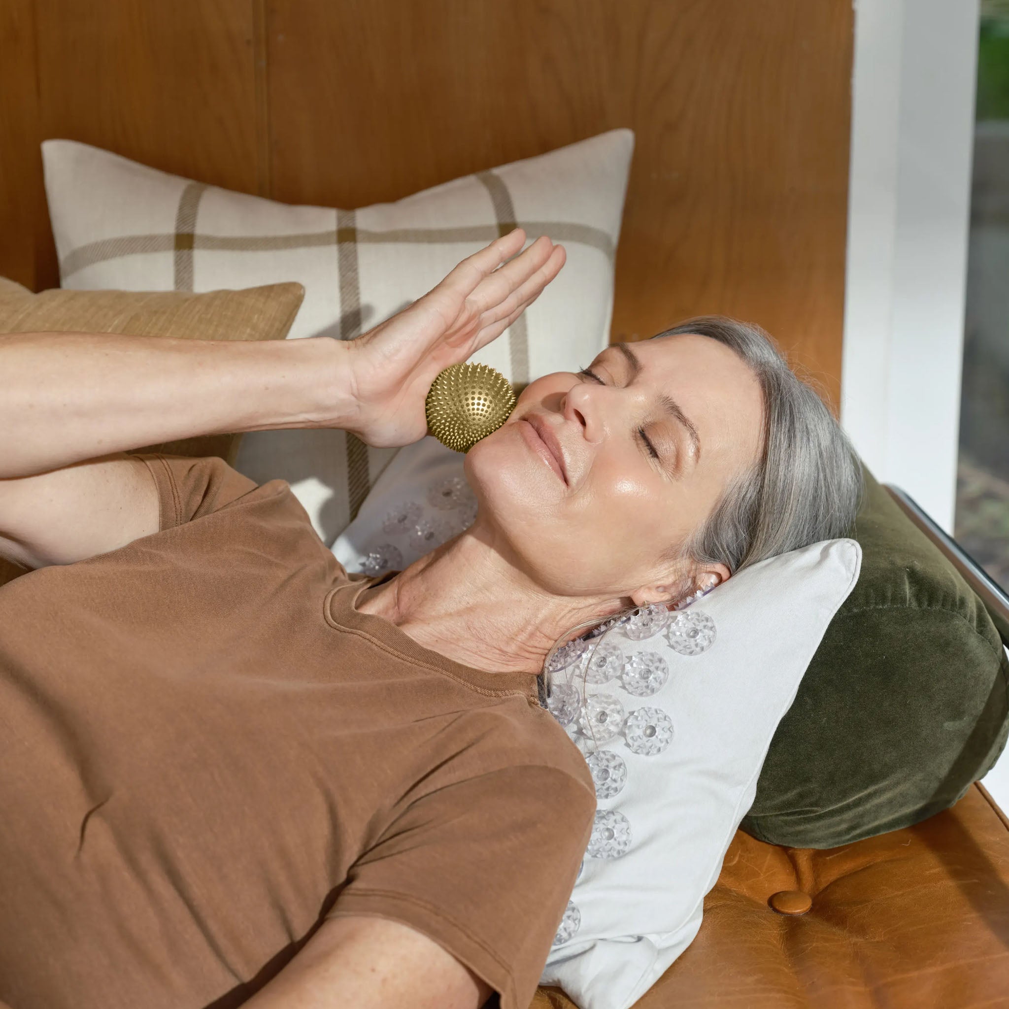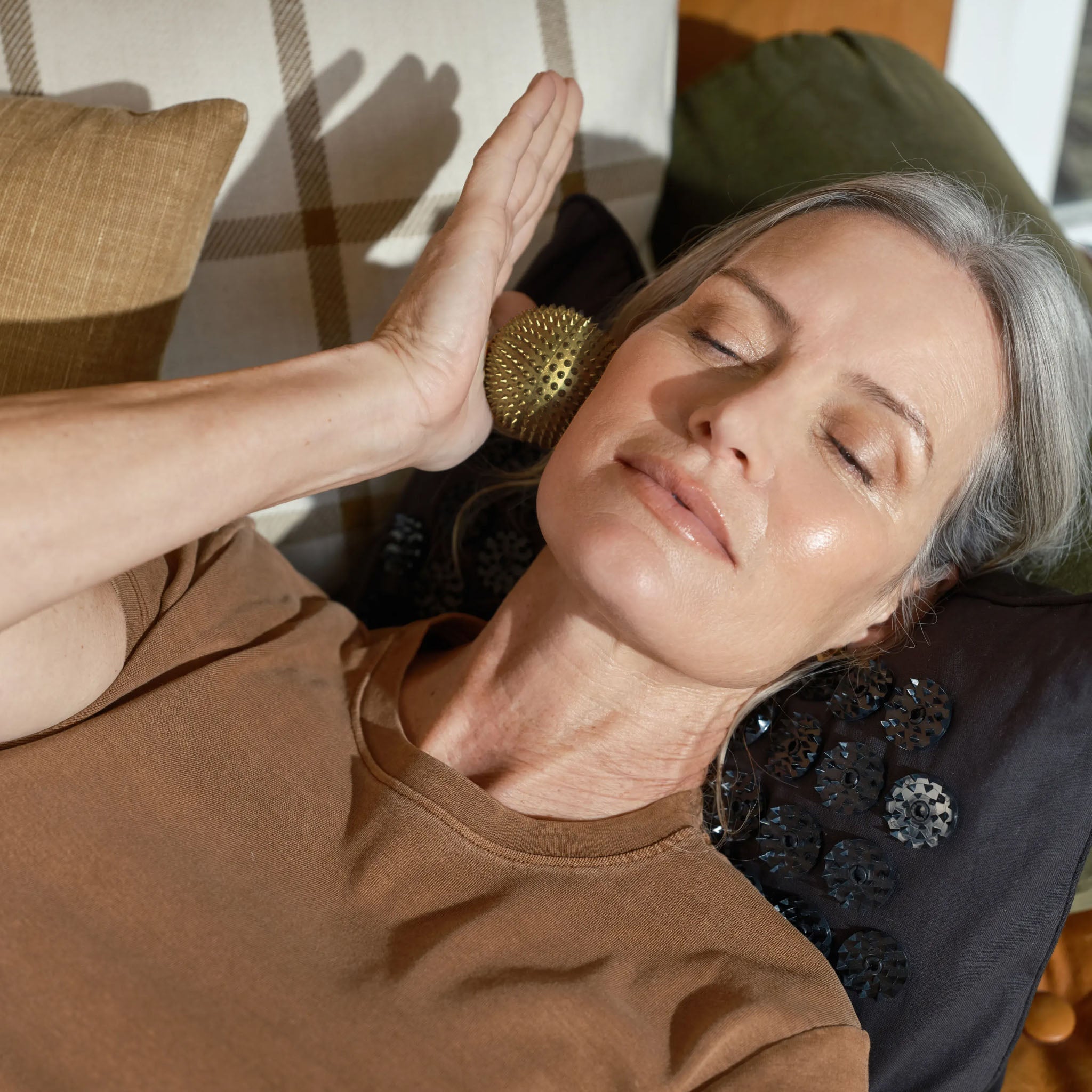 Soft enough to sink into. Firm enough to push back. Perfect for getting each spike into deep tension. In the Mat it’s organic, spongey, soft and breathable for laying on. In the Pillow, it’s shredded for unmatched plushness and mouldability.