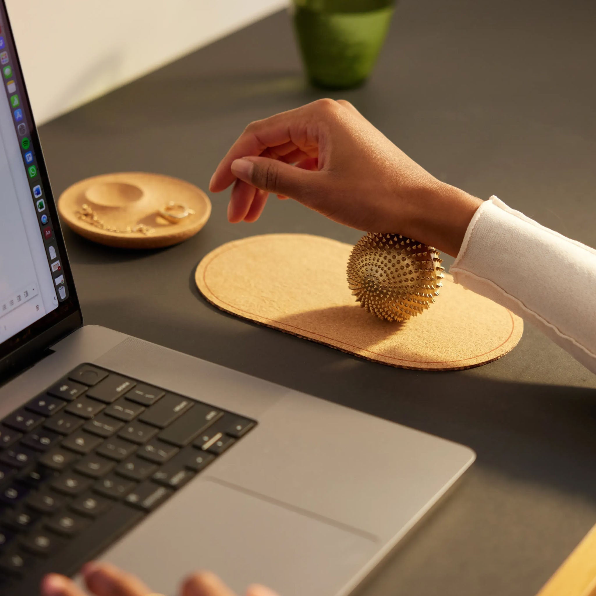 Tight hands are a sign of deep tension, but who has time for a massage? Rolling the Wonderball between them increases circulation and the sensation soothes your mind.